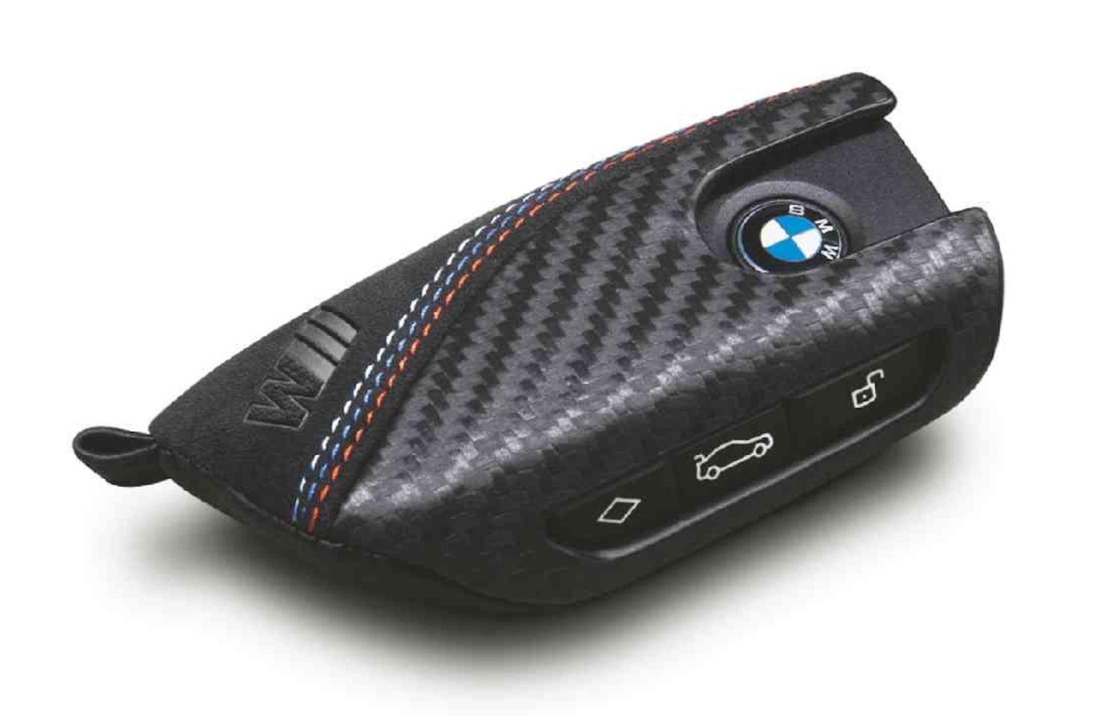 A kiváló minőségű M Performance kulcstok a BMW-re jellemző módon ötvözi a sportos eleganciát és a funkcionalitást. Az Alcantara és a bőr karbon megjelenésű anyagkeverékével illeszkedik az M Performance többi kínálatához. A dombornyomott „M” logó és az „M” színekben pompázó dekoratív varrások hangsúlyozzák a sportos dizájnt. A tok kulcstartóhoz rögzíthető a rávarrt bőrhurokkal.