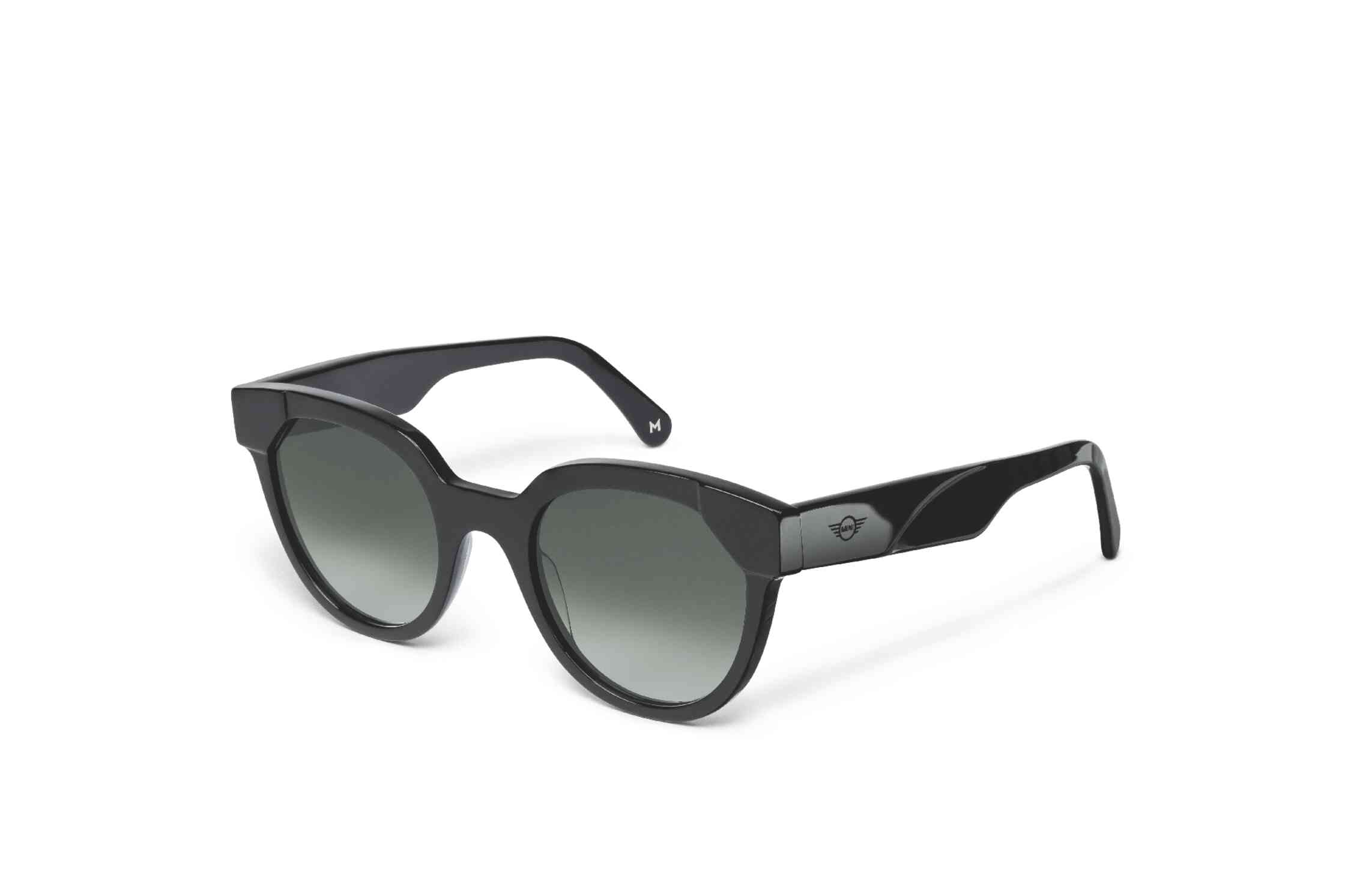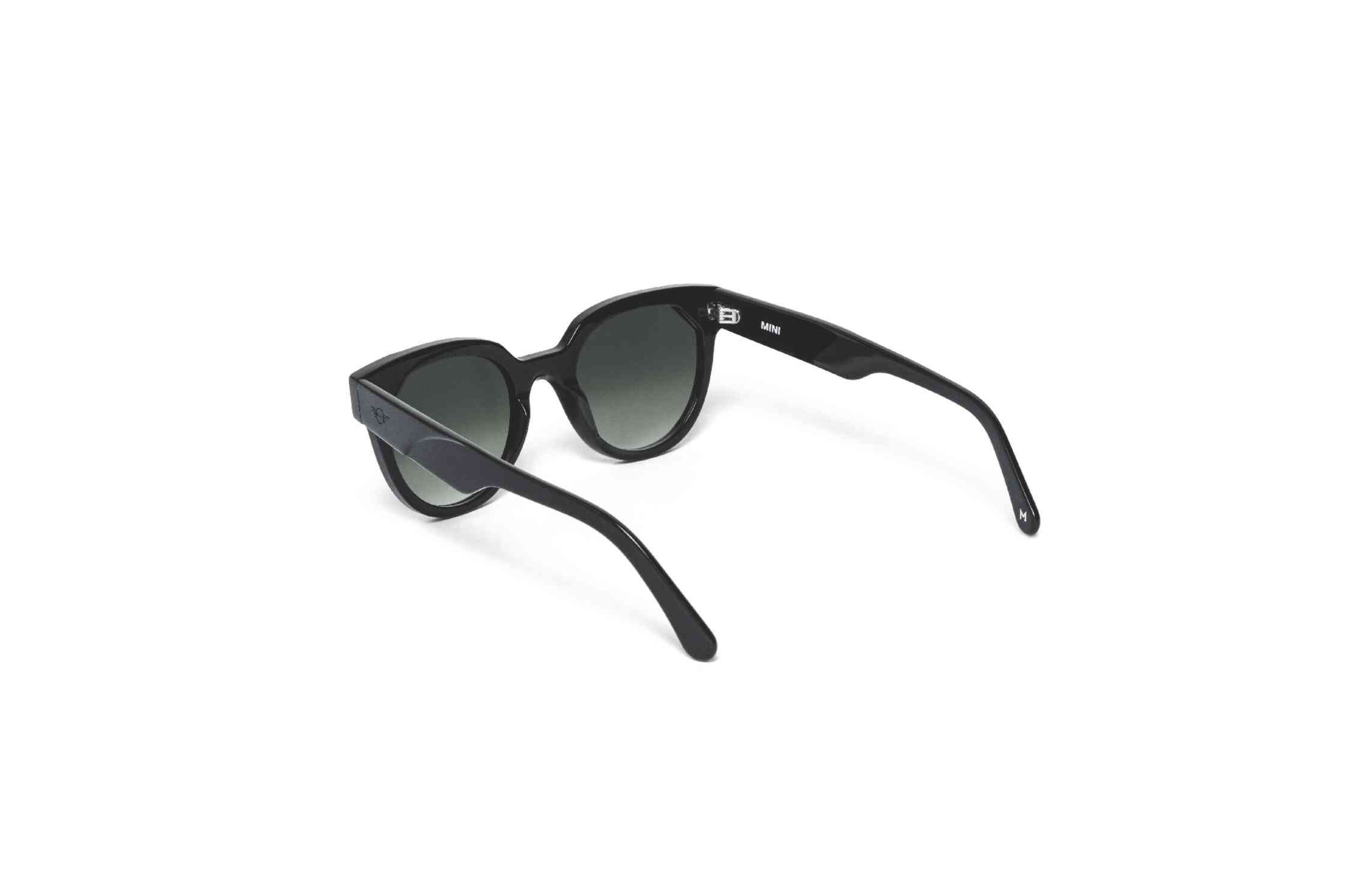 A Dick Moby által gyártott új MINI napszemüveg kiváló minőségű, újrahasznosított anyagból készült, fekete magasfényű kerettel és sötétzöld lencsékkel.