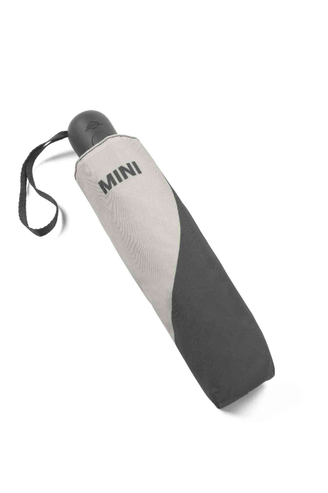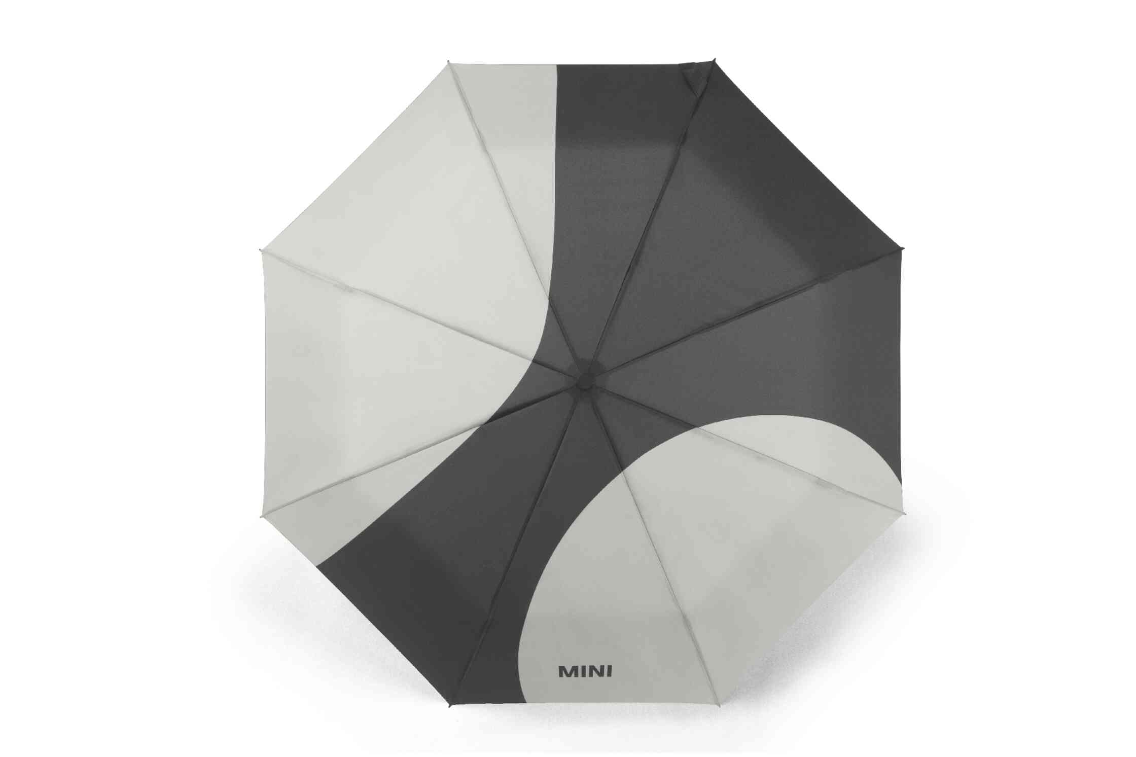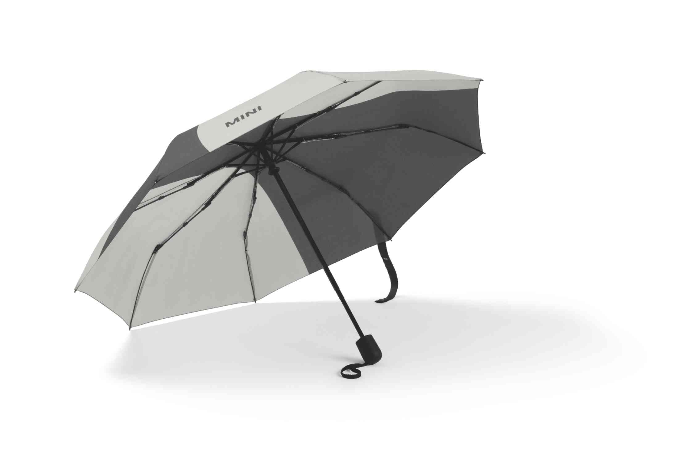 Ezzel a MINI összecsukható esernyővel jól néz ki és száraz marad. Az esernyő kinyitása és zárása egyszerű egy gombnyomással történik. Az egyedi és színes grafikai minta MINI Wordmark felirattal biztosítja, hogy még szürke esős napokon is látható legyen. A szemet gyönyörködtető személyre szabott fogantyú: a dombornyomott MINI Wing logó. A védőhuzatnak köszönhetően szárazon és tisztán szállíthatja és tárolhatja esernyőjét.