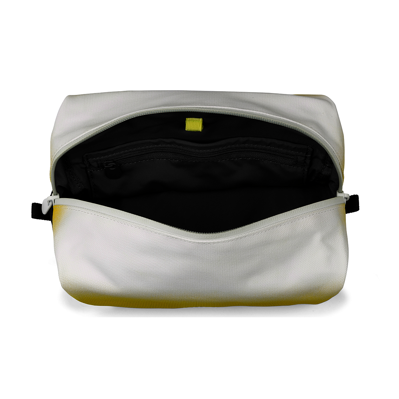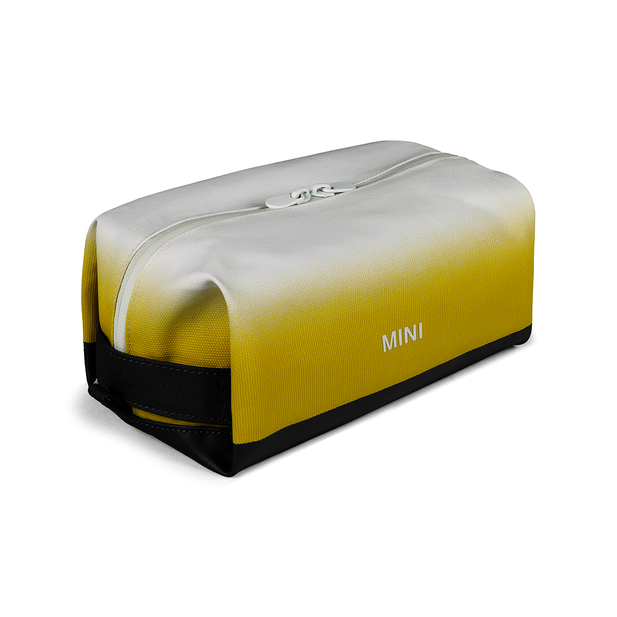 Ez a MINI piperetáska nélkülözhetetlen útitárs minden dizájnrajongó számára. Vízlepergető, viaszos vászonból készült, kétirányú cipzárral rendelkezik. Belsejében cipzáras zseb és nyitott zseb található, valamint elegendő hely az utazási és személyes tárgyak számára. Kívül a színátmenet és a MINI feliratnyomat, valamint a belső oldalon forróbélyegzett MINI pecsétminta teszi teljessé az egyedi MINI megjelenést.